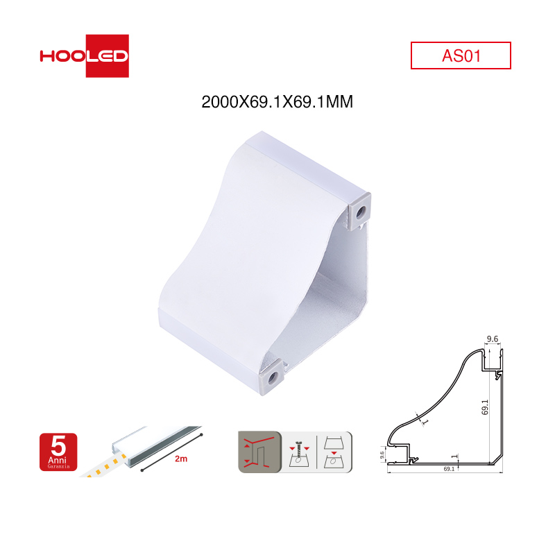 Profilo alluminio striscia LED AS01  2000x69.1x69.1mm-Profilo alluminio striscia LED-icon 04-HOOLED