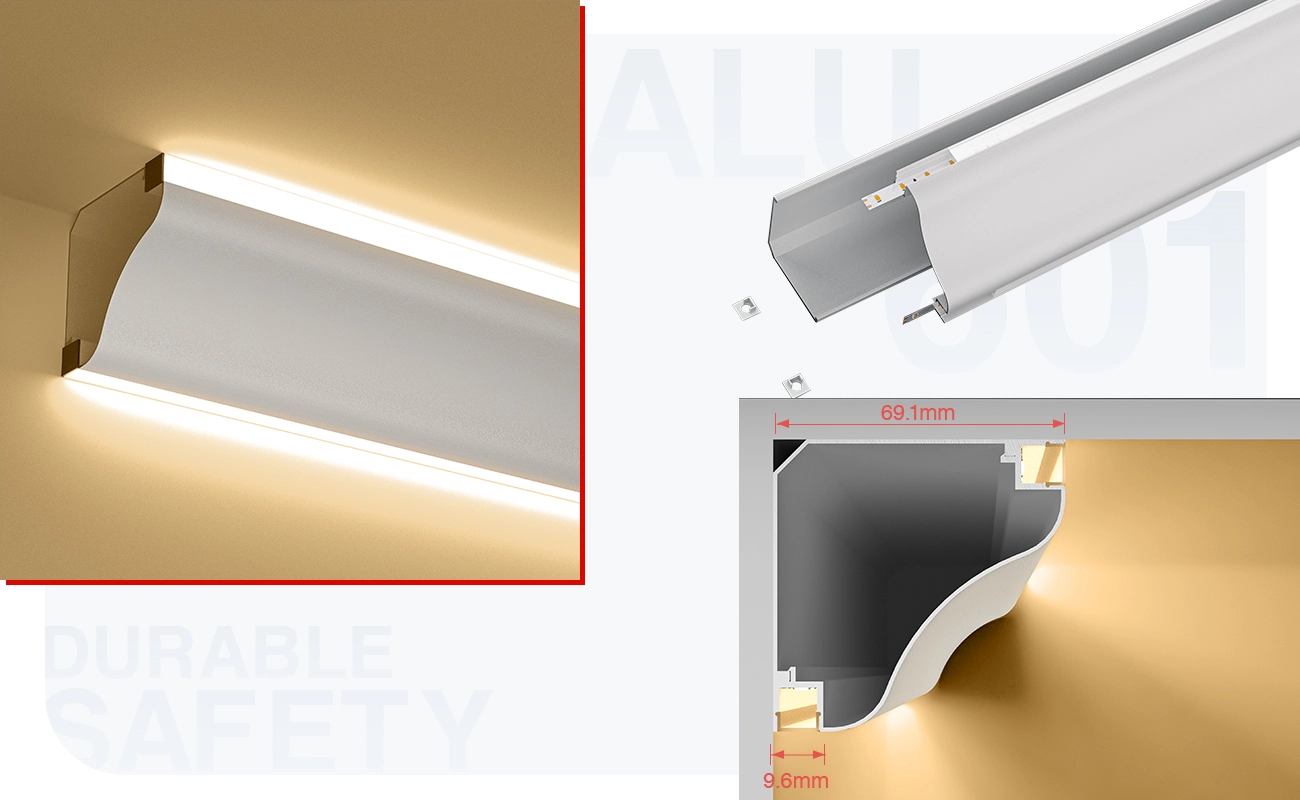 I dettagli dei profili LED sono progettati con cura, tenendo conto dei parametri e dei requisiti di installazione, in modo che possano essere adattati perfettamente a vari scenari, garantendo così che l’effetto luminoso del LED sia bello ed efficiente.